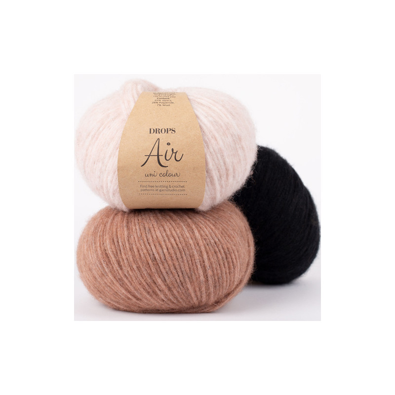 DROPS Air es - como su nombre lo indica - un hilo muy "aireado" que se siente maravillosamente bien al contacto con la piel y, esta cualidad, lo hace perfecto para accesorios, chales, suéteres y chaquetas tanto en patrones texturados como de torsadas. Las prendas hechas en DROPS Air son totalmente hipoalergénicas, lo que quiere decir que ¡todas las personas las pueden usar!