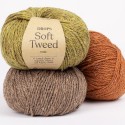 DROPS Soft Tweed es, como su nombre indica, un hilo tweed supersuave hecho en una combinación de lana merino, alpaca superfine y viscosa. El hilo es creado cardando estas fibras juntamente con pequeños “botones de tweed” fieltrados que agregan puntos de color para definir el aspecto de esta calidad.